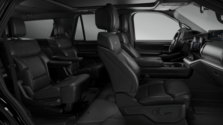 Equipment Group 600A Standard Package (2nd Row Power-Folding Captain's Chairs, 3.73 Axle Ratio, BlueCruise Equipped (90-Day Trial), Ford Digital Experience, Heated and Ventilated Leather Front Captain's Chairs, Power Tilt/Telescopic Steering Wheel with Memory, Radio: B&O Sound System by Bang and Olufsen, SiriusXM with 360L, and Wheels: 20 x 8.5 Ebony Bright Machined Aluminum), Ford Connectivity Package (1-Time Purchase), Ford Connectivity Package (1-Year Included), Stealth Appearance Package (Black Belt Molding, Black Expedition Lettering on Hood, Black Headlamp Bezel with Ebony Trim Applique, Black Platinum Badge on Tailgate, Black Roof Rails, Carbon Black Front Bumper/Fascia, Rear Side Windows Laminated Glass, and Signature Grille Lighting), 4WD, ', 10 Speakers, 3rd row seats: split-bench, 4-Wheel Disc Brakes, ABS brakes, Air Conditioning, Alloy wheels, AM/FM radio: SiriusXM with 360L, Apple CarPlay/Android Auto, Auto High-beam Headlights, Auto-dimming door mirrors, Auto-dimming Rear-View mirror, Automatic temperature control, Brake assist, Bumpers: body-color, Compass, Delay-off headlights, Driver door bin, Driver vanity mirror, Dual front impact airbags, Dual front side impact airbags, Electronic Stability Control, Emergency communication system: 911 Assist, Exterior Parking Camera Rear, Four wheel independent suspension, Front and 2nd Rows Floor Liners (tray Style), Front Bucket Seats, Front Center Armrest, Front dual zone A/C, Front License Plate Bracket, Front reading lights, Fully automatic headlights, Garage door transmitter, Genuine wood dashboard insert, Genuine wood door panel insert, Heated door mirrors, Heated front seats, Heated rear seats, Heated steering wheel, Illuminated entry, Intersection Assist, Leather steering wheel, Low tire pressure warning, Memory seat, Navigation System, Occupant sensing airbag, Outside temperature display, Overhead airbag, Overhead console, Panic alarm, Passenger door bin, Passenger vanity mirror, Power door mirrors, Power driver seat, Power moonroof: Vista Roof, Power passenger seat, Power steering, Power windows, Radio data system, Rain sensing wipers, Rear air conditioning, Rear anti-roll bar, Rear reading lights, Rear window defroster, Rear window wiper, Reclining 3rd row seat, Remote keyless entry, Security system, Speed control, Speed-sensing steering, Speed-Sensitive Wipers, Split folding rear seat, Spoiler, Steering wheel memory, Steering wheel mounted audio controls, Tachometer, Telescoping steering wheel, Tilt steering wheel, Traction control, Trip computer, Turn signal indicator mirrors, Variably intermittent wipers, Ventilated front seats, and Voltmeter.