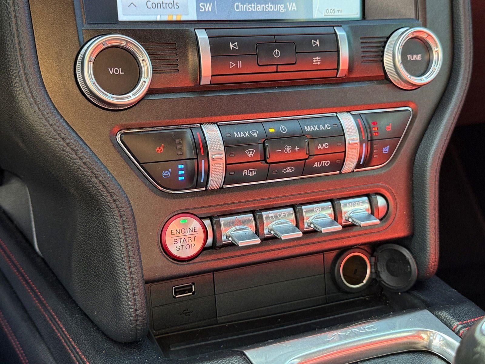 Check out our GT Premium cabin that helps you take charge of the road in comfort. You'll find heated/cooled red leather seats, a leather-wrapped steering wheel, dual-zone automatic climate control, alloy pedals, aluminum instrument panel trim, ambient lighting, and keyless access/ignition. Our Mustang's modern technology includes an 8-inch touchscreen, voice activated navigation, Android Auto®/Apple CarPlay®, WiFi compatibility, voice control, Bluetooth®, a nine-speaker sound system with bright speaker grilles, and Track Apps for performance telemetry.